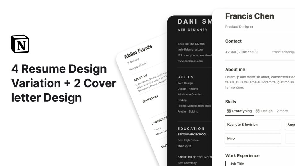 ✔ 4 minimalistic Notion Resumes
